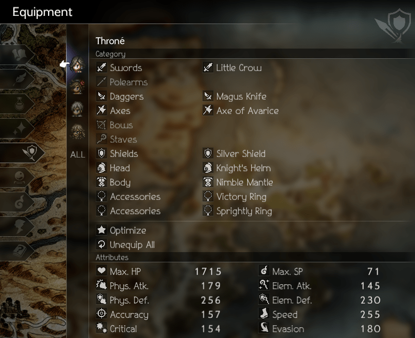 A familiar equipment and stat system that is common within most JRPGs is also present. Choose your weapons and armor carefully, or don’t, but you might regret it. Gear comes with stats to improve your character. More max health to die less, more speed to attack first, evasion to not get hit, pretty typical RPG gear mechanics. Stack your stats to allow each traveler to fill their role in your party. New gear is found throughout the game within the open world (you loot whores will enjoy exploring), as part of the main quest, via shops, and as part of the side quests, so there is plenty of motivation to go off the beaten path.