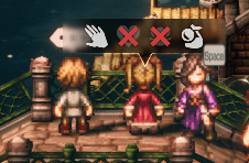 If you are interested in another Traveler joining your party that you did not pick at the start, don’t worry, you can return to each character’s main starting area to complete their starting chapter and add them to your party. A combination of classes (or “jobs”), secondary jobs, talents and equipment give you ample opportunity to have your party members fill the roles of your choosing. Each character will have two separate “Path Actions” that utilize their background to interact with the NPCs in town. For instance, Throné, my primary Traveler and thief of the group, can steal during the day and ambush at night, allowing you to “borrow” items as needed and remove certain obstacles from your path. The Traveler’s talents provide additional boons, I’ll refer here again to my main mommy…uh…character, Throné. Her talent, Blessing of Darkness, provides increased speed and attack stats for battles occurring at night. A great combination with the corrupt-ish priest Temeneos and his nighttime debuffing talent, Moonlight Judgement. It is an interesting additional level to the standard min-maxing in a JRPG.